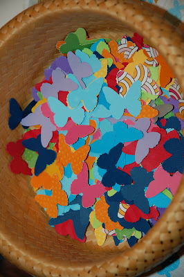 We did it.... finally. I have been wanting to use the Martha Stewart Anywhere butterfly punch and so I DID!!! With help from some very cute artists. :) My sweet neighbors (who have officially dubbed me their Second Mom... .AWWWWWW) had a basement slumber party with the girls and this was our art project for the night.....